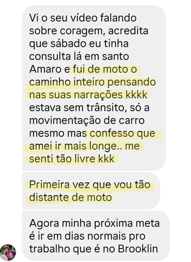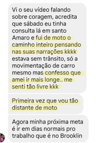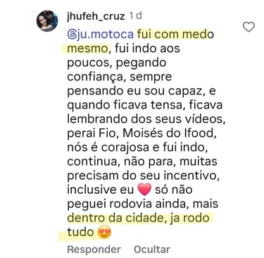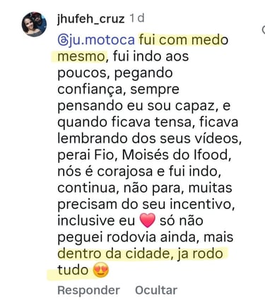 Eu sei porque passei exatamente por isso. A autoescola me preparou pra passar na prova — não pra rua de verdade. Tentei aprender com quem não tinha paciência pra me ensinar. Fui sozinha sem método e cada susto só aumentava o medo. Por um bom tempo, minha moto ficou mais parada do que andando.