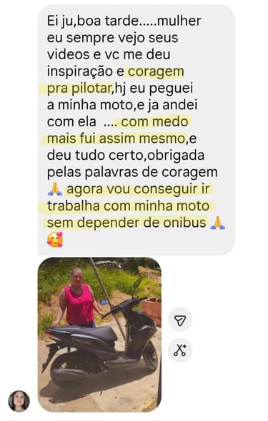 Imagina você ligar a moto, sair sozinha e chegar onde quer — sem travar, sem pedir ajuda, sem medo de fazer feio.